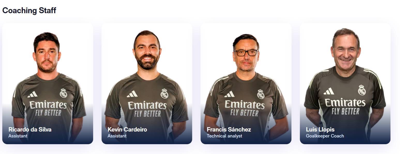 当地时间1月13日,皇马官网更新了一线队教练组的完整名单,其中阿韦洛亚担任球队的主教练,平图斯回归并担任表现教练,胡利安-卡蒙纳担任助理教练。