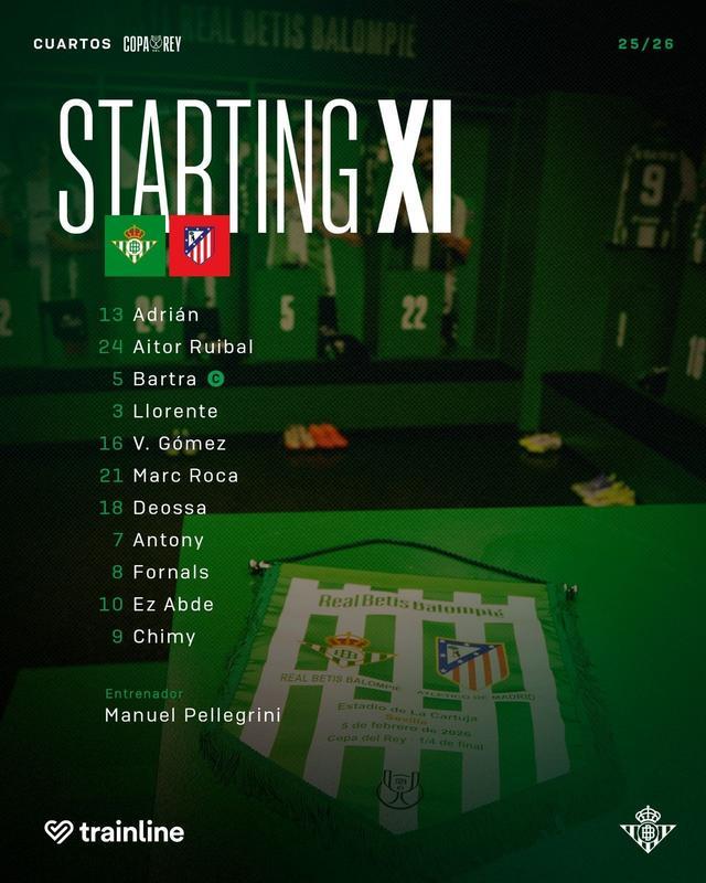 北京时间2月6号凌晨4点,西班牙国王杯1/4决赛展开一场焦点战役,马竞对阵贝蒂斯。赛前,双方公布首发阵容。